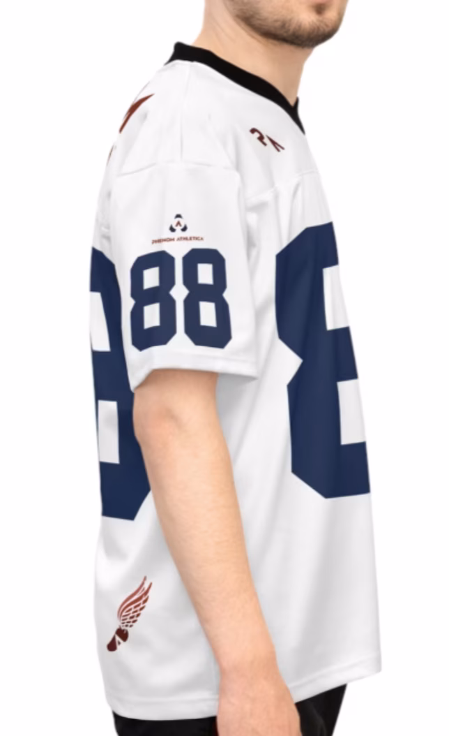 The Phenom Athletica® 1988 football Jersey is an absolute treat for American Football fans. Made with a 100% Polyester Top and a 100% Polyester Mesh bottom, these Jerseys are Breathable with 100% VaporLift™ Tech Moisture-Wicking Fabric just in case things get heated. A truly Eye Catching Jersey for both Men, Women and Football Fans alike.