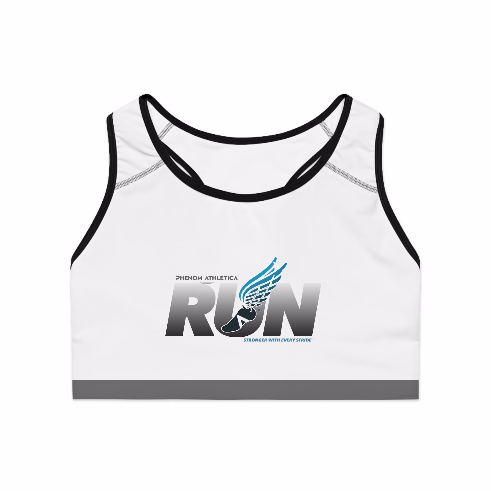 The Phenom Athletica® Run Sports Bra – with a compression fit that delivers incredible support during peak activity, and a double-layer front – this Running Sports Bra has it all: custom style, support, and 360-degree comfort.